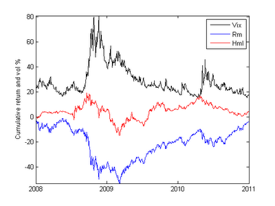 ReplyDelete1) When you show that graph in the future, you might want to put the VIX on the right hand axis. And for whatever reason, it looks like Rm and HML factors don't both start at 0.