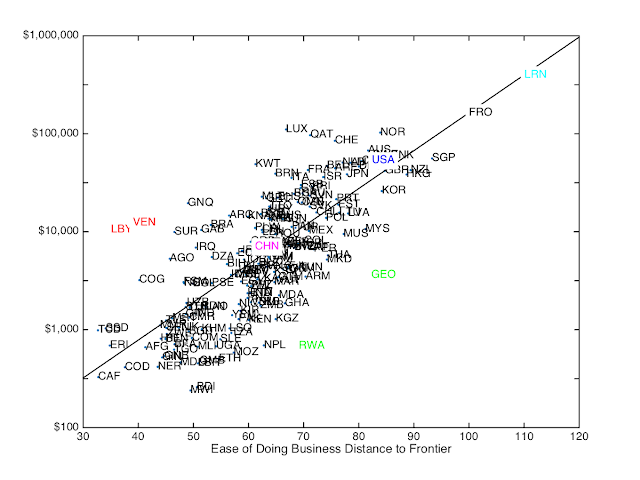 And what I think is the trickiest problem, how sure can we be that further improvements to each individual aspects in which the US really will continue to exponential effects on growth as the trend suggests? The US is very much on the frontier (it is ranked 7th in the EoDB) and it's not so obvious that the benefits will accrue the same way.