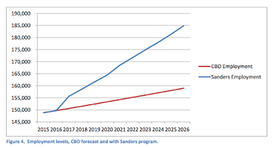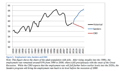 DeleteThree points. 1, Friedman uses CBO projections as a baseline. But when was even a single CBO projection not way above later outcomes? I think never. So, baseline already biased. 2, what are we fussing about here? If we are talking about alternative realities, using CBO methods, let CBO do the computations. Bernie is still in the Senate, he can get them to do it. 3, why is that Bernie's beloved social democratic countries in northern Europe always do better, wealth- and employment-speaking, when they move back from unaffordable socialist pie-in-the-sky policies? Why does reality and actual experience not cloud any Keynesian projection, ever?