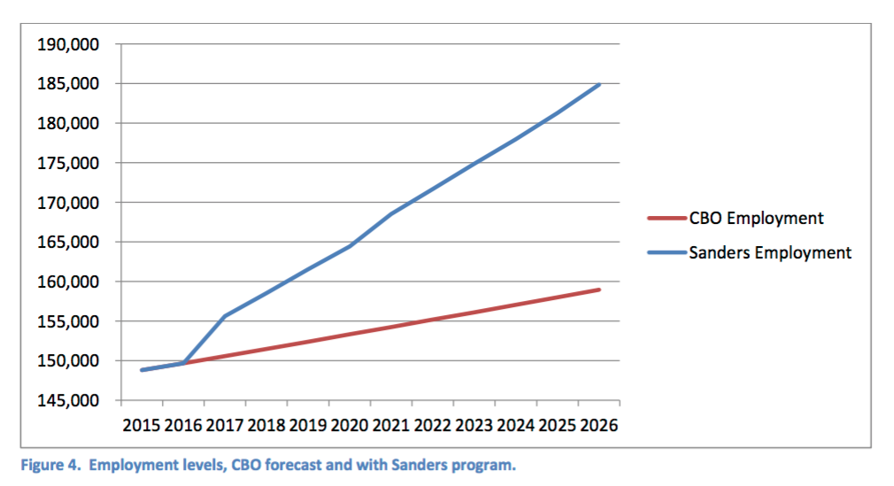"The Sanders program... will raise the gross domestic product by 37% and per capita income by 33% in 2026; the growth rate of per capita GDP will increase from 1.7% a year to 4.5% a year."