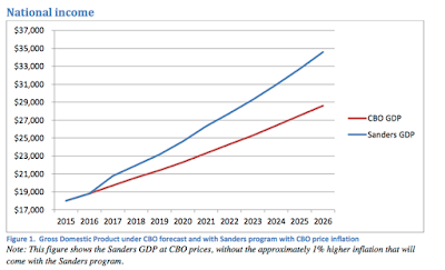 "The Sanders program... will raise the gross domestic product by 37% and per capita income by 33% in 2026; the growth rate of per capita GDP will increase from 1.7% a year to 4.5% a year." And, apparently, raise the growth rate permanently.